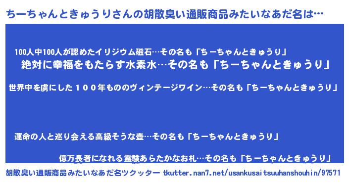 | 意味不明あだ名 | 『住所不定無職ちーちゃんときゅうり(8歳)』 |