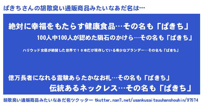| ヘコむあだ名 | 『ぱきち(遠い目)』『ぱきを』『牛乳』 |