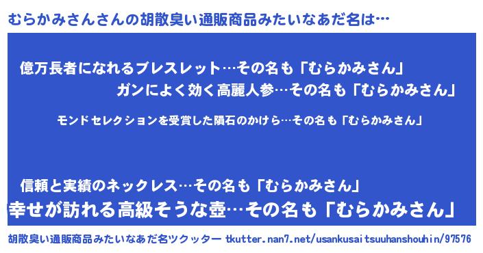 | ヒーロー風カッコイイあだ名 | 『慈愛の使者むらかみさん』 |