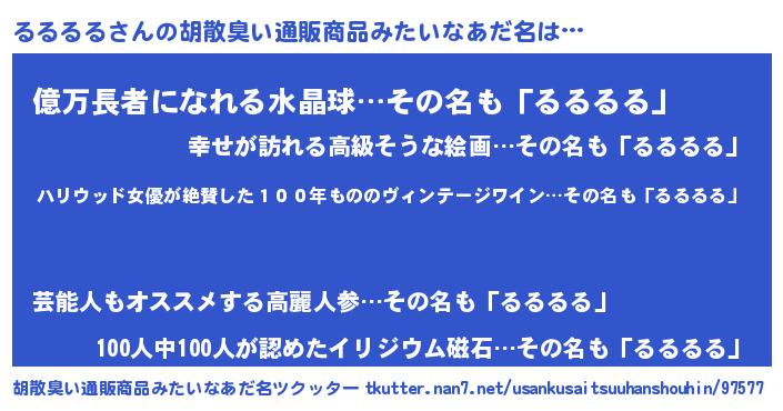 るるるるさんの胡散臭い通販商品みたいなあだ名をツクッター!