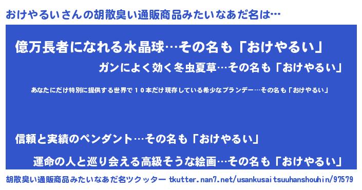 | ヘコむあだ名 | 『おけっふぃ~』『酢こんぶ』 |