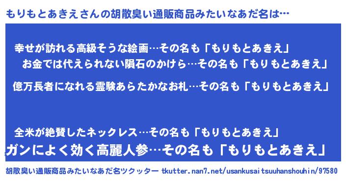 | 肩書あだ名 | 『もりもとあきえ御曹司』 |