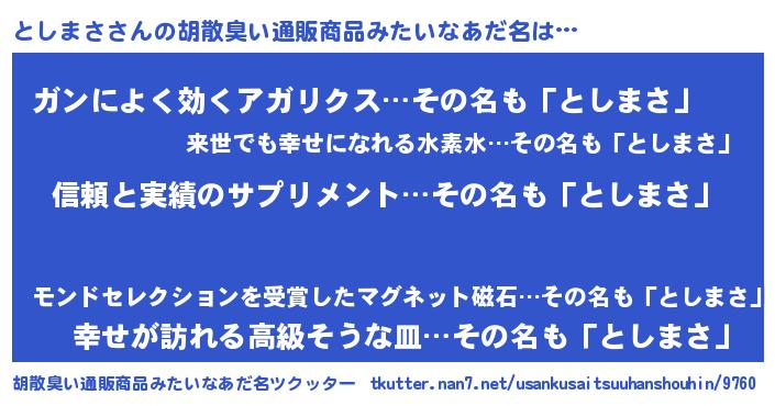 | 肩書あだ名 | 『としまさ団長』『としまさ総統』 |
