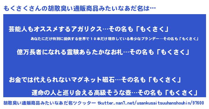 もくさくさんの胡散臭い通販商品みたいなあだ名をツクッター!
