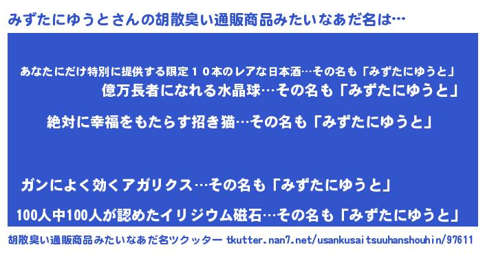 | ヘコむあだ名 | 『みずたにゆうと(笑)』『みずふぇ~』 |