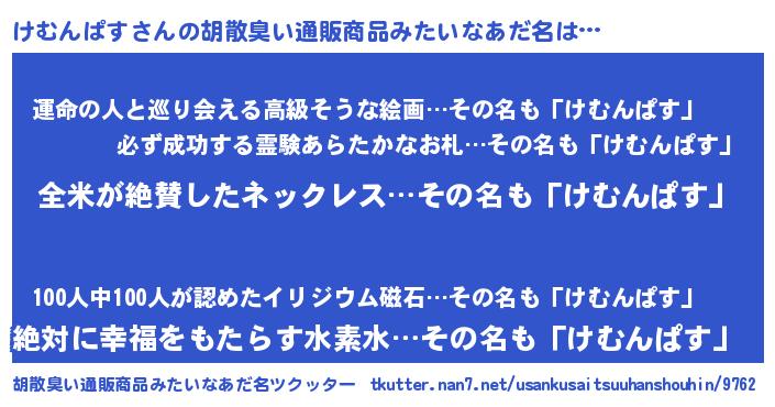 | 男性向けラノベタイトル風あだ名 | 『けむんぱすの嫁は女の子じゃないと思った?』 |
