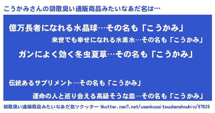 | 意味不明あだ名 | 『自称こうかみ』『ペロリンこうかみ』 |