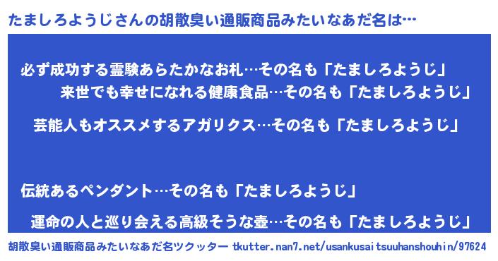 | 恥ずかしいあだ名 | 『タマシロヨウジデラックス』『たまちん』 |