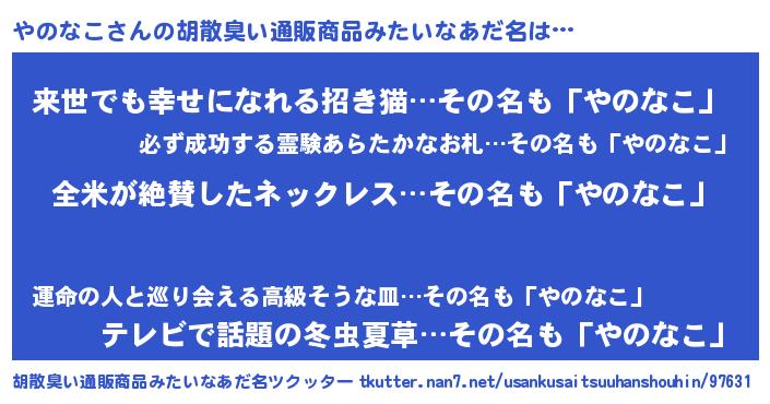 | 意味不明あだ名 | 『とにかく怪しいやのなこ』 |