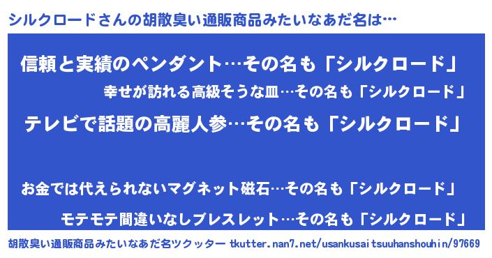 | 意味不明あだ名 | 『自称シルクロード』 |