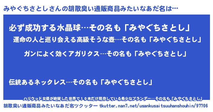| 肩書あだ名 | 『みやぐちさとし閣下』 |