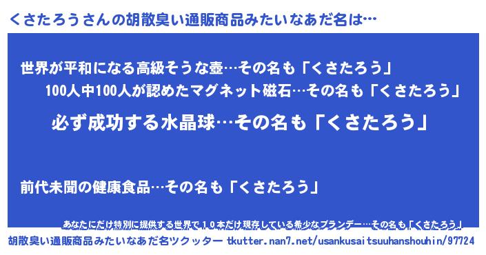 | 男性向けラノベタイトル風あだ名 | 『くさたろうの憂鬱』 |