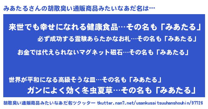 | ヘコむあだ名 | 『みあたる(笑)』『みあっふぃ~』 |