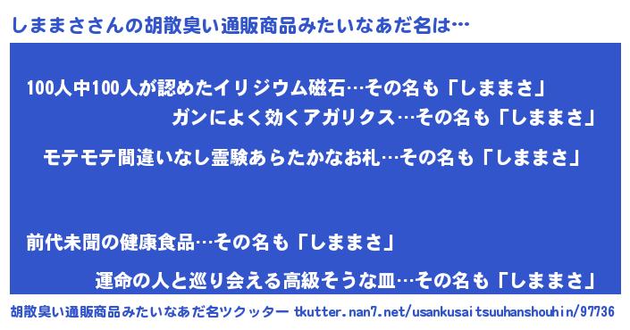 | 欧米人風あだ名 | 『マイケルしままさ』『ダニエルしままさ』 |