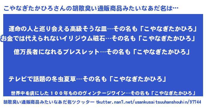 | 肩書あだ名 | 『こやなぎたかひろ社長』 |