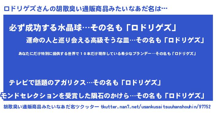| 伝説のあだ名 | 『封印されしスナイパーロドリゲズ』 |