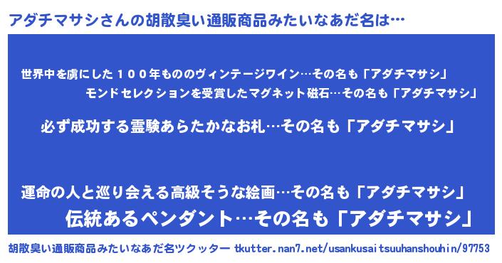 | ヒーロー風カッコイイあだ名 | 『スーパーアダチマサシ』『仮面アダダー』 |