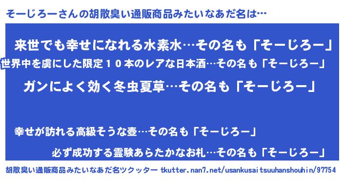 | 意味不明あだ名 | 『自称そーじろー』『永久保存そーじろー』 |