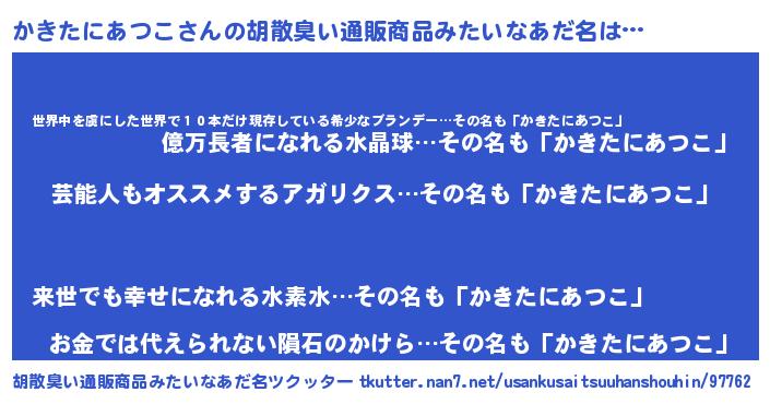 | 意味不明あだ名 | 『自称かきたにあつこ』 |