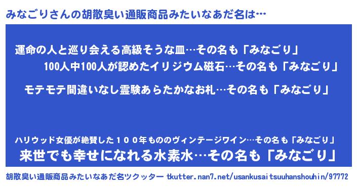 | 意味不明あだ名 | 『ペロリンみなごり』『永久保存みなごり』 |
