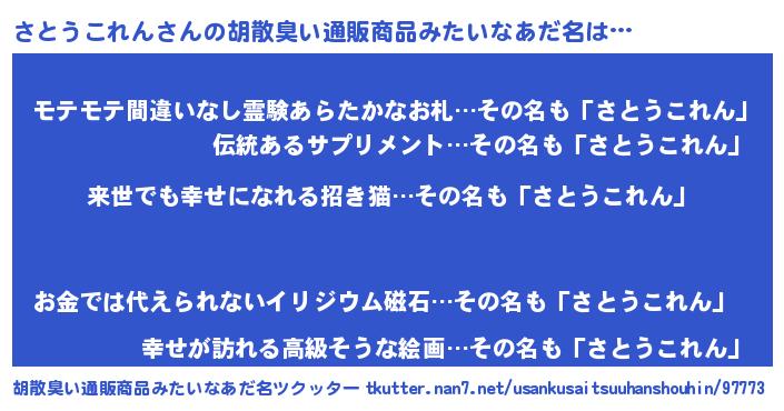 | ヘコむあだ名 | 『さとうこれん(笑)』『さとっふぃ~』 |