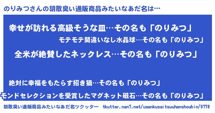| 意味不明あだ名 | 『とにかく怪しいのりみつ』 |