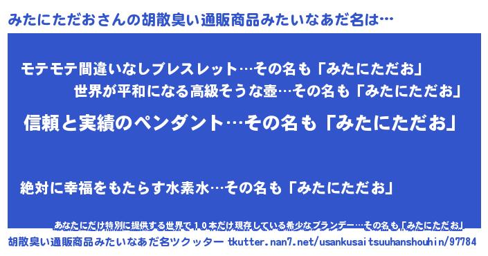 | 意味不明あだ名 | 『とにかく怪しいみたにただお』 |