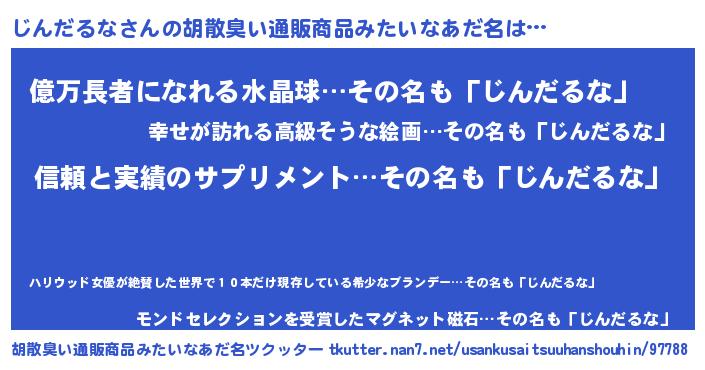 | 意味不明あだ名 | 『とにかく怪しいじんだるな』 |