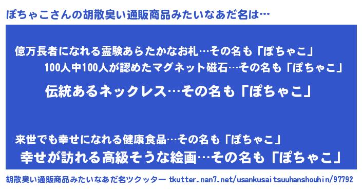 | 男性向けラノベタイトル風あだ名 | 『ぽちゃこの嫁は女の子じゃないと思った?』 |