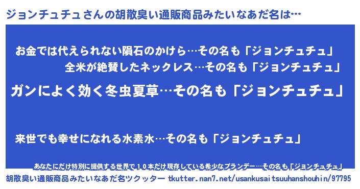 | ヘコむあだ名 | 『ジョっちょ』『ジョンチュチュ(遠い目)』 |