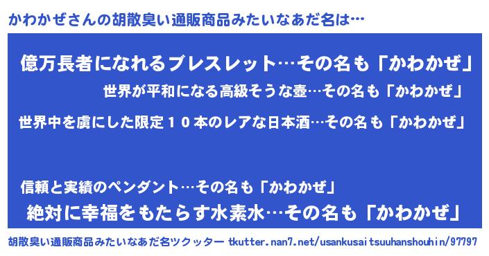 | 意味不明あだ名 | 『住所不定無職かわかぜ(56歳)』 |