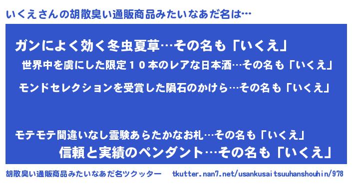 | 意味不明あだ名 | 『ヨモギ科いくえ属』『自称いくえ』 |