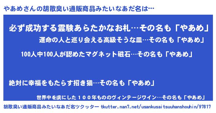 | ヒーロー風カッコイイあだ名 | 『正義の使者やあめ』『スーパーヤアメ』 |