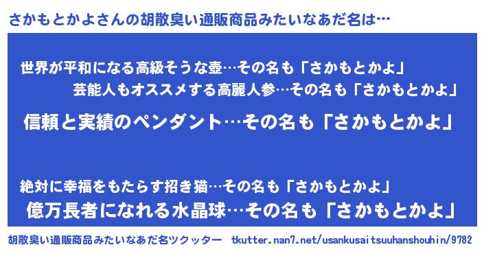 | 意味不明あだ名 | 『とにかく怪しいさかもとかよ』 |