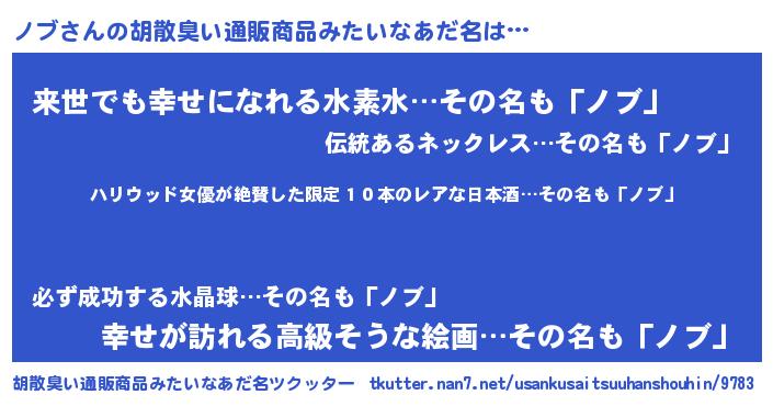| ヘコむあだ名 | 『ノブ(爆)』『なまこ酢』『ノブお』 |
