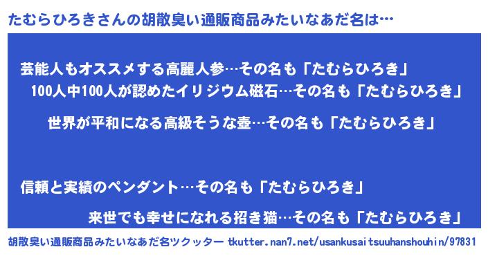 | 欧米人風あだ名 | 『たむらひろきクリステル』 |