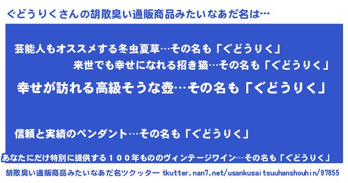 | 意味不明あだ名 | 『ぐどうりくフォーエバー』 |