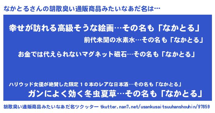 | ヘコむあだ名 | 『なまこ酢』『なかとる(小並感)』 |