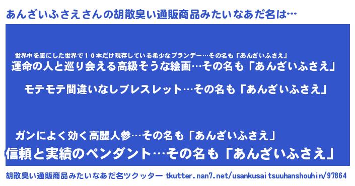 | 男性向けラノベタイトル風あだ名 | 『転生したらあんざいふさえだった件』 |