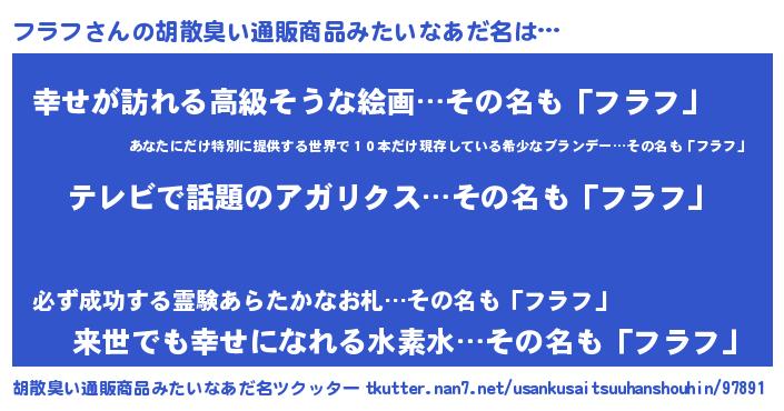 | 意味不明あだ名 | 『自称フラフ』『フラフフォーエバー』 |