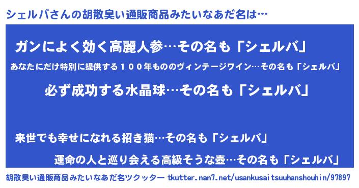 | 男性向けラノベタイトル風あだ名 | 『シェルバの憂鬱』『緋弾のシェルバ』 |