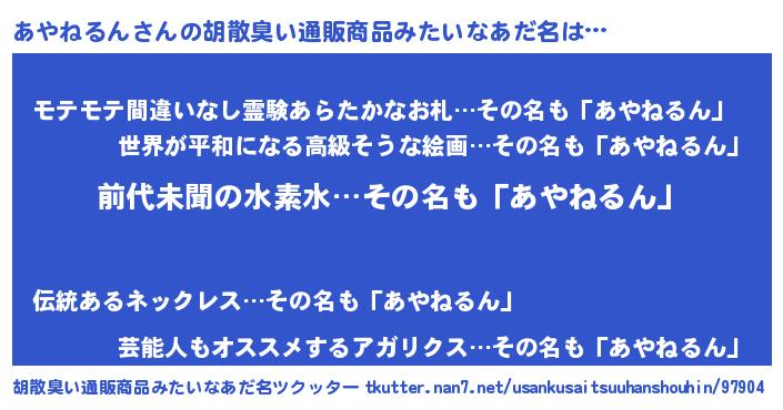 | ヒーロー風カッコイイあだ名 | 『ネオアヤネルン』『スーパーアヤネルン』 |