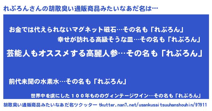 | 男性向けラノベタイトル風あだ名 | 『Re:れぶろんから始める異世界生活』 |
