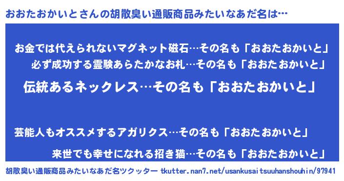 | 意味不明あだ名 | 『とにかく怪しいおおたおかいと』 |