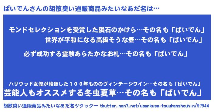 | 意味不明あだ名 | 『ペロリンばいでん』『自称ばいでん』 |