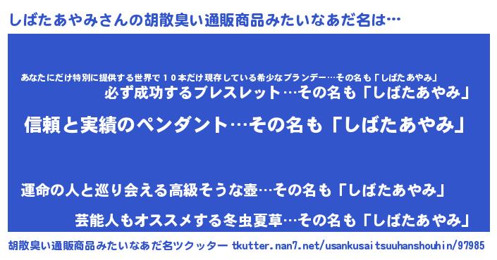 | ポケモン風あだ名 | 『ヒシバタアヤミ』『シバゴンZ』 |