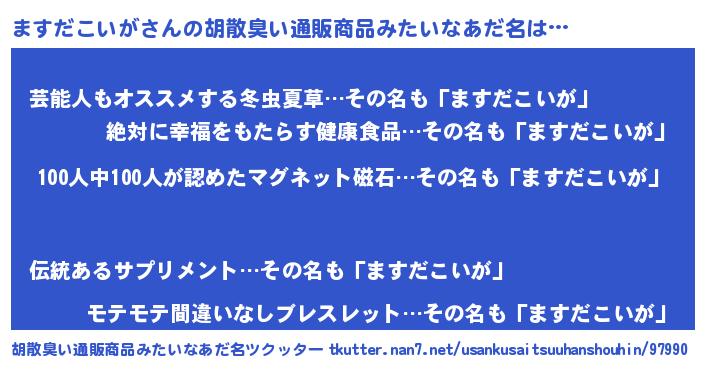 | ヘコむあだ名 | 『ますふぇ~』『ますだこいが(遠い目)』 |
