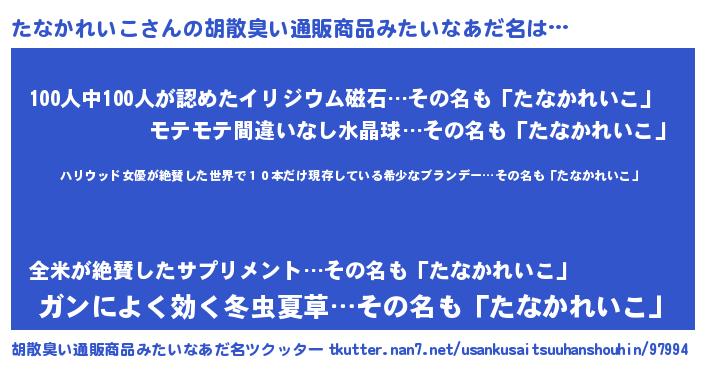 | ヘコむあだ名 | 『たなっふぃ~』『たなっちょ』 |