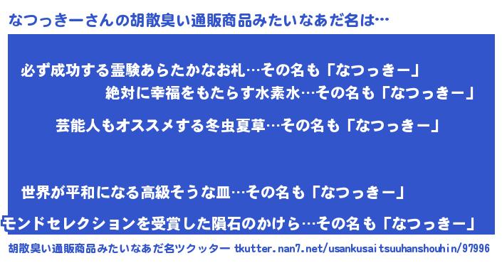 | 伝説のあだ名 | 『封印されしスナイパーなつっきー』 |