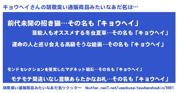 | 欧米人風あだ名 | 『キョウヘイクリステル』 |